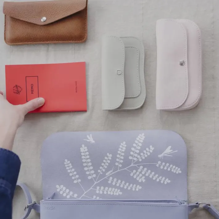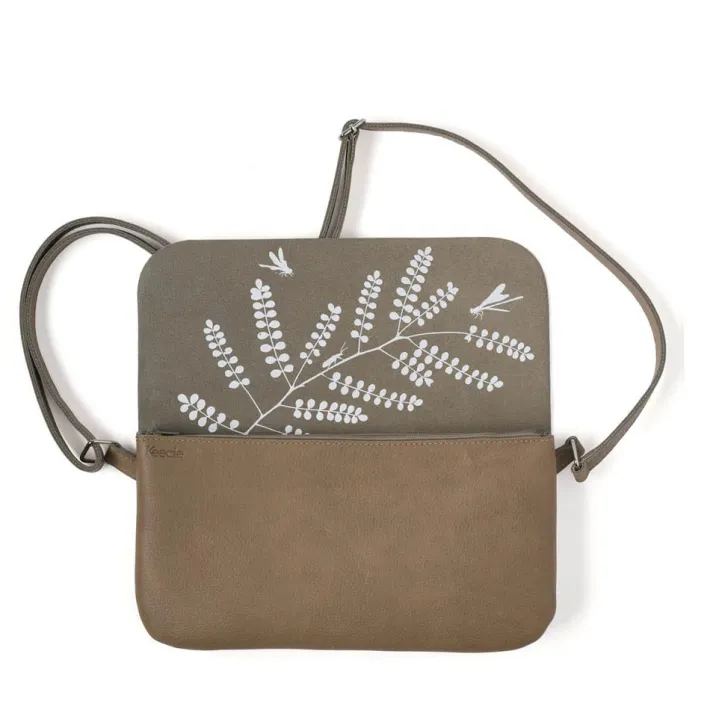Of course this Keecie also has a cheerful silkscreen print on the inside. For this design we chose a botanical print of the Kowhai tree. The Kowhai is an important tree for the Maori people, that’s frequently and diversely used in their daily lives. A multi functionality we thought fitting for the versatile Double Up. And if you decide to buy this high-quality leather bag, you can of course get it in any of our fifteen unique Keecie colours.