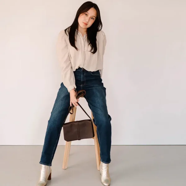 The Off Duty bag is A5 size, which makes it the larger version of our Lunch Break shoulder bag. After all, sometimes lunchbreak is just too short!
