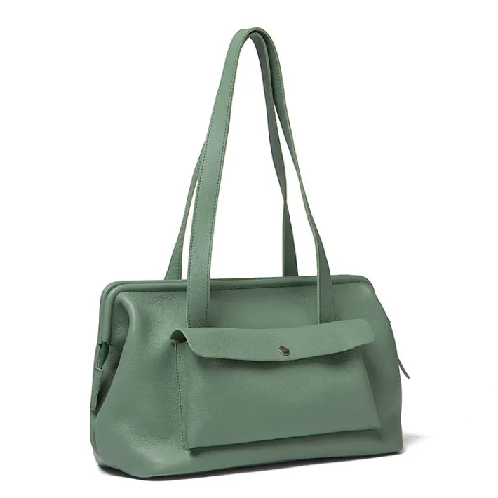 You might have noticed that the Room Service model is based on a classic doctor’s bag. Characteristic for this type of bag is its fold-out opening frame, creating an extra large inside area. The Keecie twist to this bag is that we’ve added long handles, enabling you to comfortably carry the bag on your shoulder. Inside there is an additional compartment and there’s a compartment with a popper fastener on the outside. For your stethoscope…