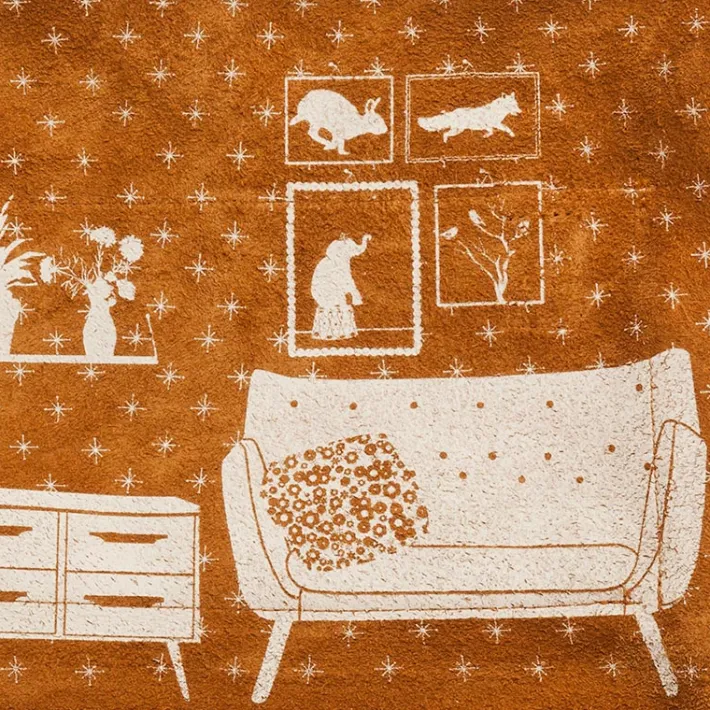 - the bag has two prints on the inside: a lovely soft rug on the base and a homely living room on the side