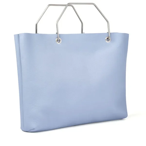 You can carry a lot of groceries in this Lavender Blue leather shopper. No more plastic bags when you go to the market on Saturday. It’s easy to hang this durable leather bag by its steel handles on the handlebars of your bike.