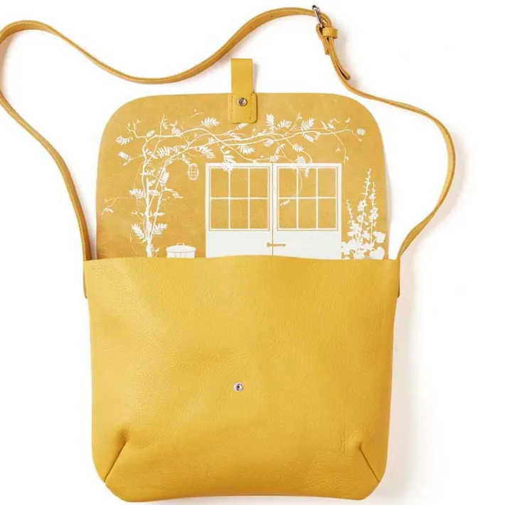 We’ve depicted our dream workplace on the inside of this bag. Wouldn’t it be wonderful to step out into the back garden in the morning, holding a cup of coffee, to get down to work in this rustic garden house?