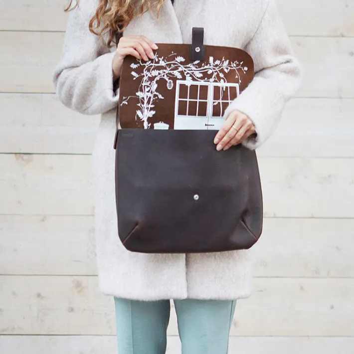 This is no ‘ordinary’ Dark Brown leather satchel, but one that is big enough to hold everything you need. Even a 15-inch laptop. There’s also a separate compartment for your phone on the inside. The Back Yard is functional and stylish, for work and leisure. The shoulder strap is adjustable, so it fits every woman, whether you carry this laptop bag across your body or on your shoulder. It’s also easy to carry when you’re cycling.