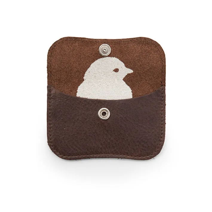 Every time you open the Mini Me, this quirky little chick looks at you. You’ll actually enjoy spending money with this little purse. At our studio in Poland, they screen-print the picture onto the leather by hand. So every chick is unique.