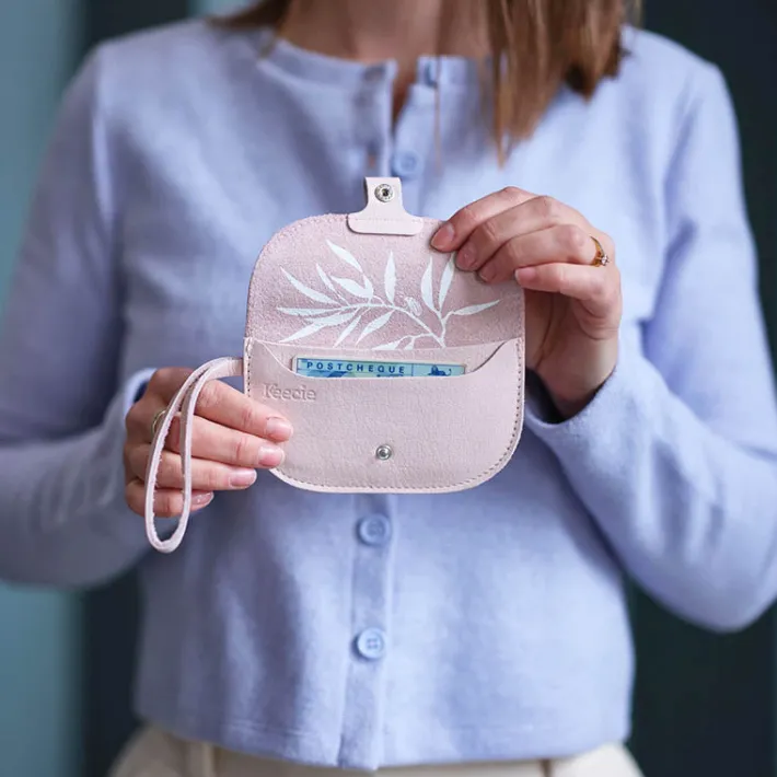 Would you like to make someone’s wish come true? This purse is a lovely gift to wish someone a wonderful birthday, happy holidays or just to surprise them! And remember: you are allowed to occasionally wish something for yourself too. On the inside of this Powder Pink Small Wishes purse, there is a print of an olive branch, a symbol of peace and hope. And if you look closely, you can see a tiny beetle that has already chewed on some of the leaves.